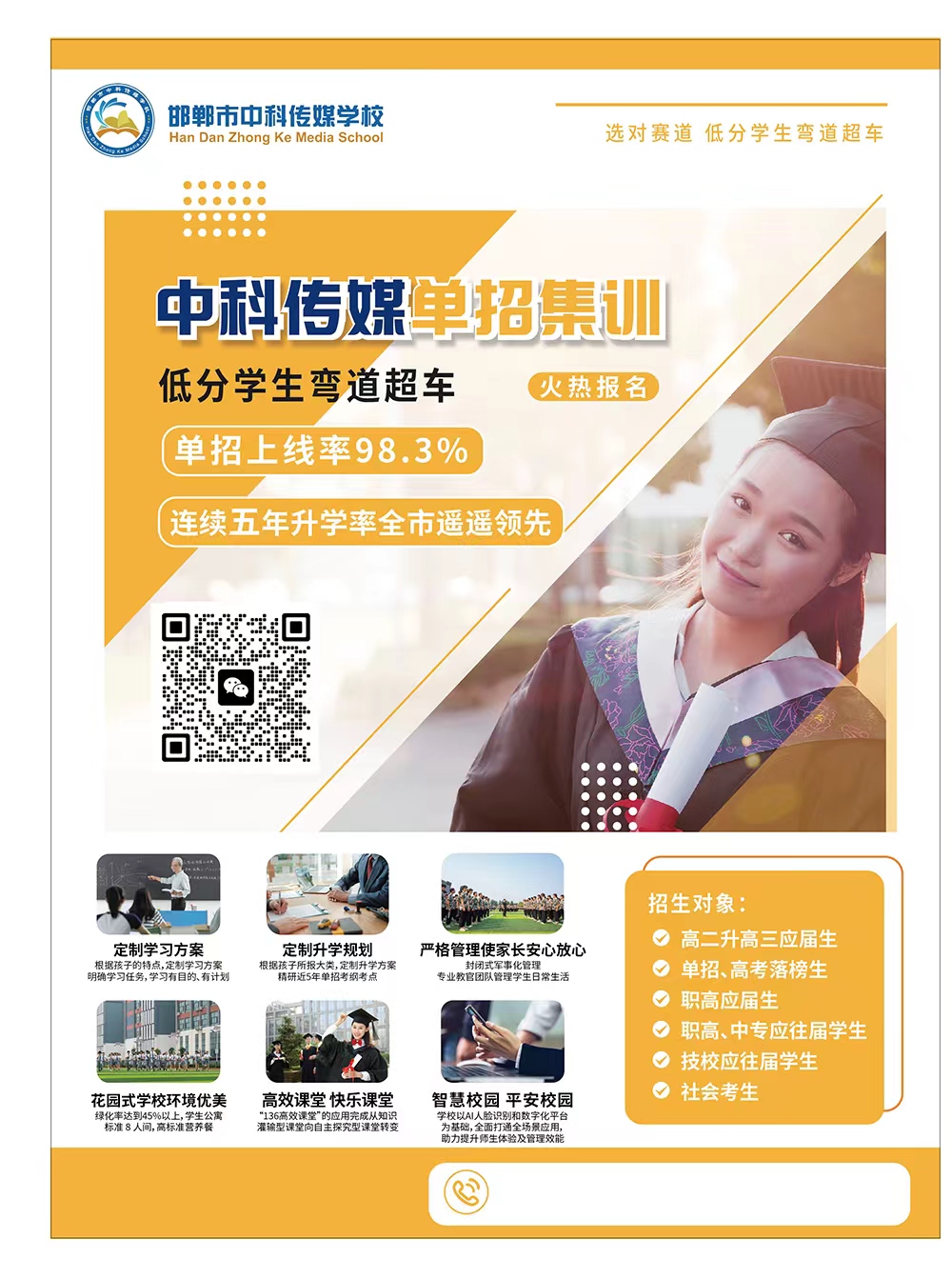 服务项目:邯郸高三毕业生升学,邯郸单招培训,邯郸书法集训,邯郸美术集训招生,邯郸高考落榜学技术